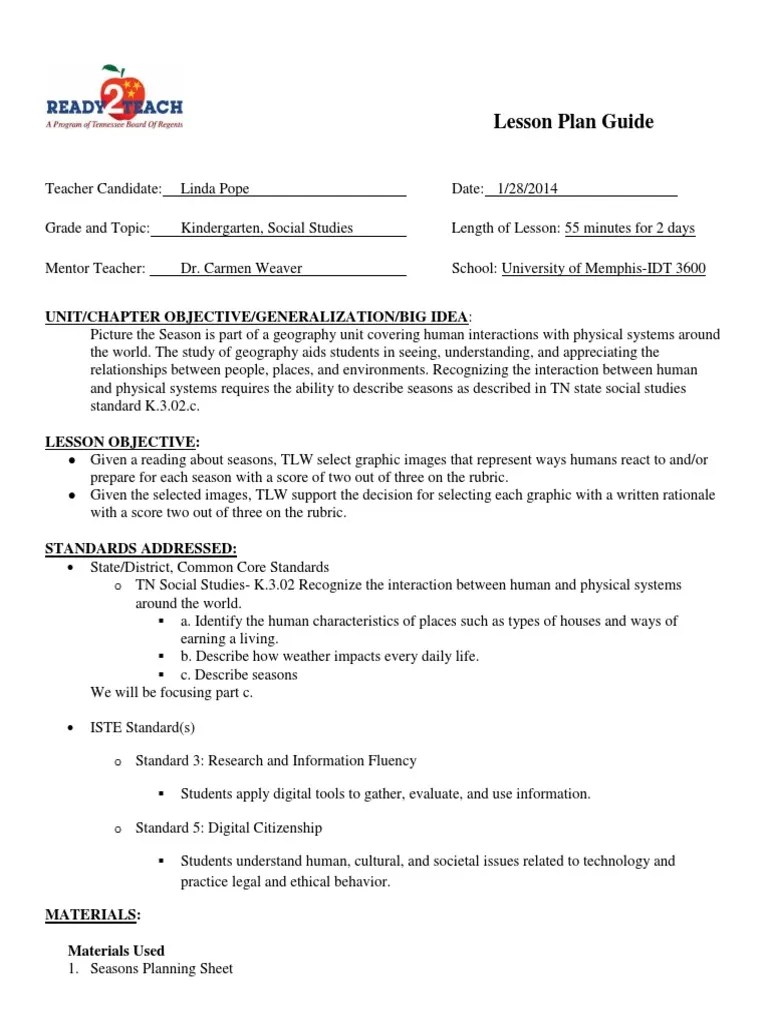 edtpa lesson planlindapope Lesson Plan Technology