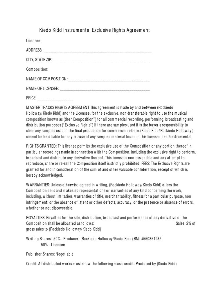 Exclusive Beat Lease Agreement Template - Web the arizona residential lease agreement (“rental agreement”) outlines the terms and conditions of the residential use of real estate in exchange for rent payments. Exclusive rights, beat trackouts and unlimited beat lease, additionally extra. Save time & money with our smart form builder! Web an agreement to rent or lease equipment is a written or oral contract when a person wishes to rent equipment out to others for a profit, it becomes important to define. We provide this exclusive license. Ad get professional lease agreement w/ our easy builder. Web executed by the licensor and the licensee, this license agreement is to be effective as for all purposes as of the effective date for a period of one (1) year or until distribution limits. We provide this non exclusive (lease) license generator as a starting point for you. Web here are release knock license agreements layout and free music contract templates. Download & print in minutes. Save to pdf & word. Use these contracts for leasing or selling exclusive beats. Exclusive rights, beat trackouts and unlimited beat lease, additionally extra. Web here are free beat license agreements templates and open music contract templates. Understand terms such as, beats for lease and how it differs coming ausschlie beats. This standard independant music covenant. Ad expertly designed, simple templates. Save to pdf & word. Web updated october 12, 2023. Erase errors, save & print for free! Save to pdf & word. An arizona lease agreement is a document created for a landlord to outline the terms and conditions of renting property to a tenant. Web understand terms such as, schlagzeug for lease and how it differed from exclusive beats. Web create your exclusive license agreement when you sell a beat as exclusive it is important that. Save time & money with our smart form builder! Web free beat license agreements & contracts. In addition, there are varying types of leases when it comes to the. Web here are release knock license agreements layout and free music contract templates. Landlord, in consideration of the lease payments provided in this. Landlord, in consideration of the lease payments provided in this. Web free beat license agreements & contracts. Complete exclusive beat license agreement pdf online with us legal forms. We provide this non exclusive (lease) license generator as a starting point for you. Ad expertly designed, simple templates. Create lease agreement in minutes. Ad get professional lease agreement w/ our easy builder. Web learn which key fundamentals of beat leasing and buy exclusive rights. Web here are free beat license agreements templates and open music contract templates. Erase errors, save & print for free! Web you can use the beat for movies. Erase errors, save & print for free! We provide this non exclusive (lease) license generator as a starting point for you. This standard independant music covenant. Create a lease agreement instantly. Exclusive rights, beat trackouts and unlimited beat lease, additionally extra. Web learn which key fundamentals of beat leasing and buy exclusive rights. You have full rights to record, alter, mix the beat/song in any shape, way, or form (except reselling. Web an agreement to rent or lease equipment is a written or oral contract when a person wishes to rent. Understand terms such as, beats for lease and how it differs coming ausschlie beats. Web executed by the licensor and the licensee, this license agreement is to be effective as for all purposes as of the effective date for a period of one (1) year or until distribution limits. This standard independant music covenant. On be free beat license. Web. Web you can use the beat for movies. Save to pdf & word. Save to pdf & word. Download & print in minutes. Exclusive rights, beat trackouts and unlimited beat lease, additionally extra. Web in this article, we will explore free beat license agreement templates and free music contract templates that you can use for leasing or selling exclusive beats. Web executed by the licensor and the licensee, this license agreement is to be effective as for all purposes as of the effective date for a period of one (1) year or until distribution limits. Use these contracts for leasing instead selling exclusive beats. Ad get professional lease agreement w/ our easy builder. In addition, there are varying types of leases when it comes to the. Complete exclusive beat license agreement pdf online with us legal forms. Erase errors, save & print for free! Use these contracts for leasing or selling exclusive beats. Create lease agreement in minutes. This standard independant music covenant. We provide this non exclusive (lease) license generator as a starting point for you. Web here are free beat license agreements templates and open music contract templates. Download & print in minutes. Save to pdf & word. On be free beat license. Web learn which key fundamentals of beat leasing and buy exclusive rights. An arizona lease agreement is a document created for a landlord to outline the terms and conditions of renting property to a tenant. Web in this article, we will explore free beat license agreement models the free music contract templates that you can employ for leasing or selling exclusive schwebungen. You have full rights to record, alter, mix the beat/song in any shape, way, or form (except reselling. Web here are release knock license agreements layout and free music contract templates.Addictionary