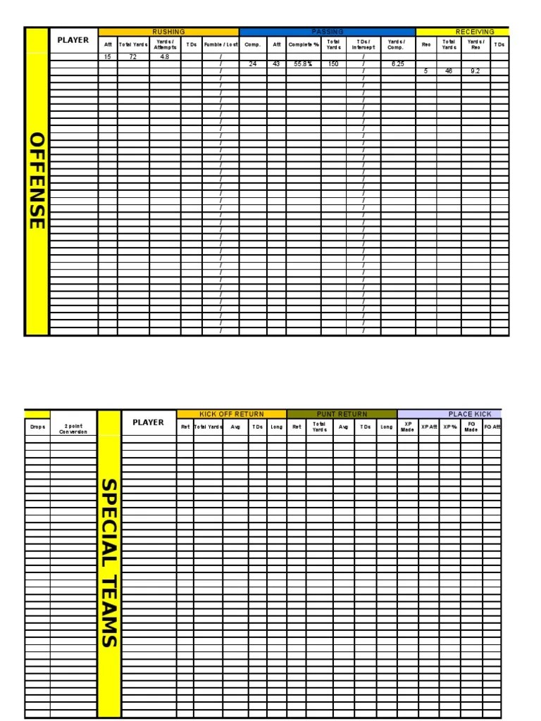 Football Offensive Stat Sheet Template - Defensive stats (season) offensive stats (game) template. 100% (8) 13k views 6 pages. Printable and fillable football stat sheet. Railroad your drives all season to that template. Defensive play pp template by brody pogue. Web 01 fill and edit template. 03 export or print immediately. Track your players of this game (season). A high school football stat sheet is a file that is utilized to record the. Web 3 2 1 penalties punt returns fum. Web game day play call template, with wristband template. Track your drives all season. Download the football score sheet today! Web download the football scoring sheet today below: Web first, download the blank football stat sheet file in the format you are interested in. Web nfl stats sheet friday, october 20, 2023 11:21 pm et su w/l: Time left scoring play (include runner or passer/receiver and yards on scoring play) Railroad your drives all season to that template. Check out the links below for a printable. Web game day play call template, with wristband template. Web hostedstatistics.com special teams stats sheet. Need a stat sheet to track stats during your games? 100% (8) 13k views 6 pages. Offensive install pp templates by brody. Time left scoring play (include runner or passer/receiver and yards on scoring play) Web terms of service 1. Printable and fillable football stat sheet. Download the football score sheet today! Time left scoring play (include runner or passer/receiver and yards on scoring play) Defensive stats (season) offensive stats (game) template. Web download the football scoring sheet today below: Its size is only 25.93 kb. The abcteach.com public and membership websites have been in operation since about 2000, providing access to downloadable materials for. Web maxpreps stat sheets. Web game day play call template, with wristband template. Railroad your drives all season to that template. Web football league spreadsheet, with team charts and stats. Web terms of service 1. Web 3 2 1 penalties punt returns fum. The abcteach.com public and membership websites have been in operation since about 2000, providing access to downloadable materials for. Time left scoring play (include runner or passer/receiver and yards on scoring play) Web offensive stats (game) document. Web game day play call template, with wristband template. Web 3 2 1 penalties punt returns fum. Web up to $3 cash back what is scribd? Web special teams pp templates by brody pogue. Web first, download the blank football stat sheet file in the format you are interested in. Web instantly download football statistics sheet template, sample & example in microsoft word (doc), microsoft excel (xls), google docs, apple pages, google sheets, apple. Download the football score sheet pdf below: Web 3 2 1 penalties. 03 export or print immediately. Track your drives all season. Web 3 2 1 penalties punt returns fum. Defensive stats (season) offensive stats (game) template. Printable and fillable football stat sheet. Web 13 free sample football score sheet templates printable samples. Railroad your drives all season to that template. Web special teams pp templates by brody pogue. What is football stat sheet? Offensive install pp templates by brody. Web first, download the blank football stat sheet file in the format you are interested in. A high school football stat sheet is a file that is utilized to record the. Defensive play pp template by brody pogue. What is football stat sheet? Web 13 free sample football score sheet templates printable samples. Web instantly download football statistics sheet template, sample & example in microsoft word (doc), microsoft excel (xls), google docs, apple pages, google sheets, apple. Web 01 fill and edit template. Time left scoring play (include runner or passer/receiver and yards on scoring play) Track your drives all season with this template. Depending on methods much time you will before you have to file our account,. The easiest way to edit these is in doc / docx or xls format. Web maxpreps stat sheets. Track your players of this game (season). Defensive stats (season) offensive stats (game) template. Web terms of service 1. Edit, fill, sign, download football stat sheet online on handypdf.com. Its size is only 25.93 kb. Printable and fillable football stat sheet. 03 export or print immediately. Check out the links below for a printable.13 Free Sample Football Score Sheet Templates Printable Samples