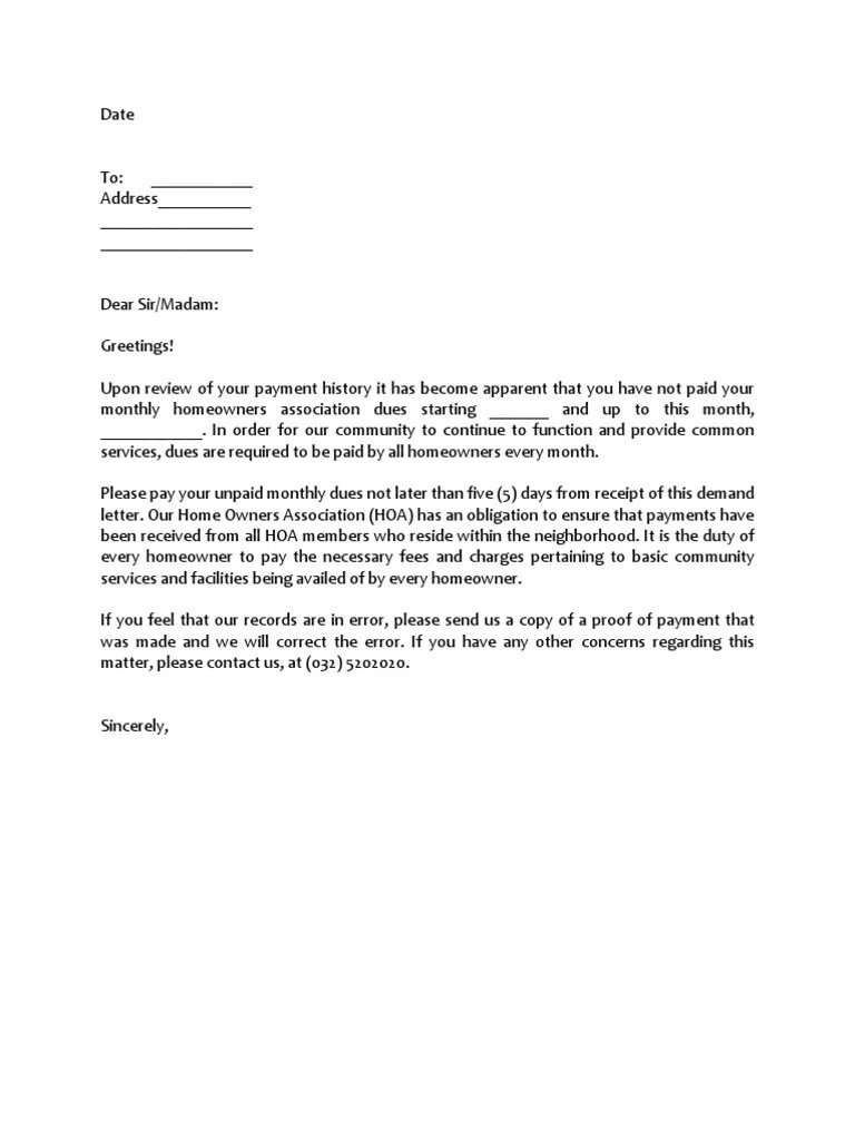 Free Hoa Dues Letter Template