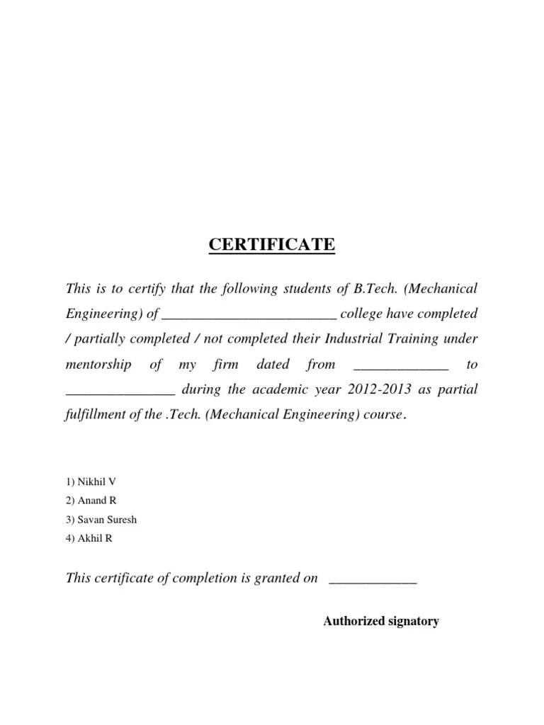 industrial training certificate
