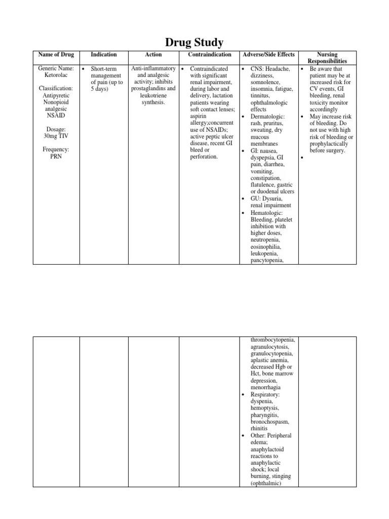 Ketorolac (Drug Study)