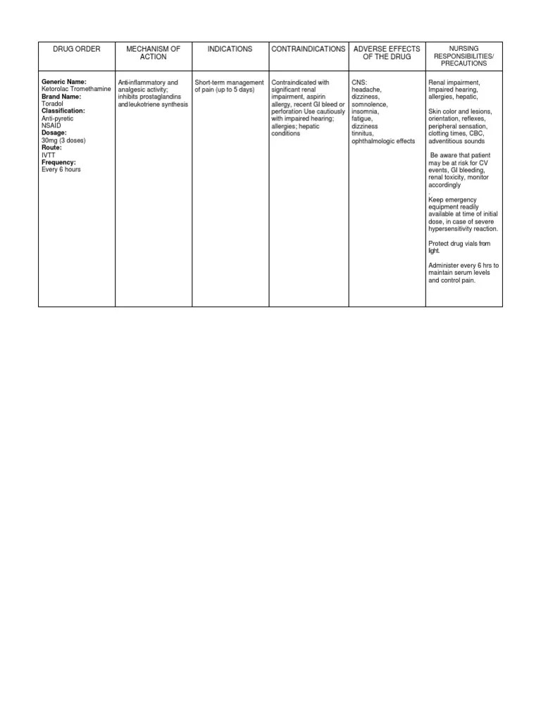Ketorolac Ati Medication Template