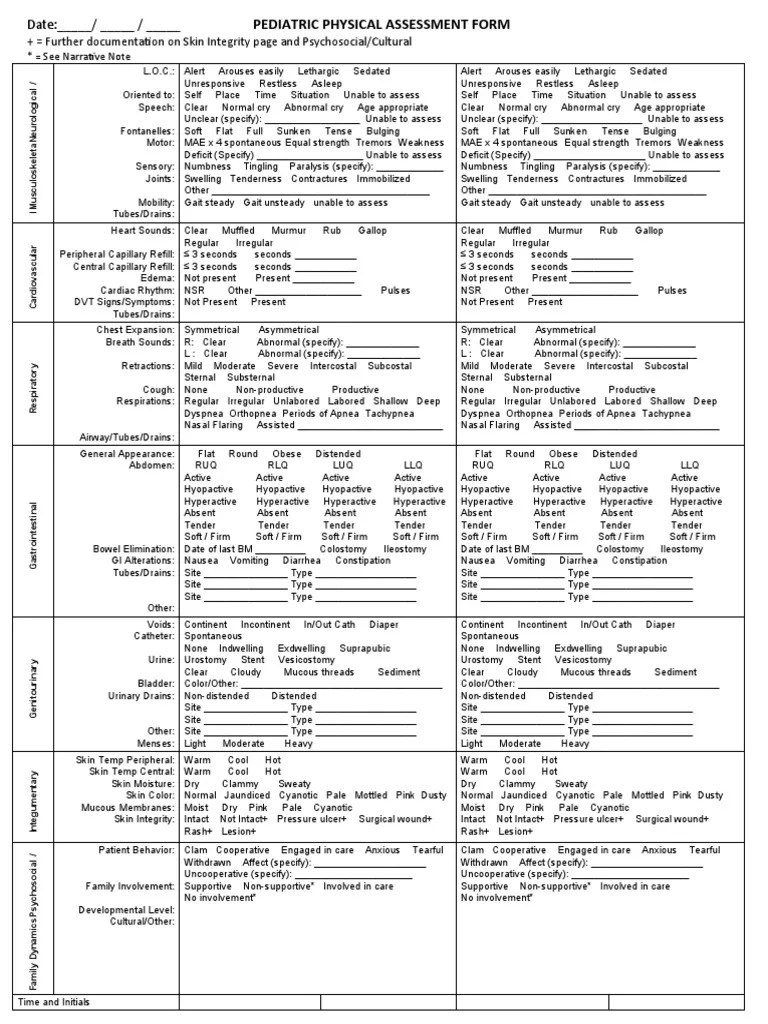 NU 260Pediatric Assessment Form Symptoms And Signs Medical Specialties