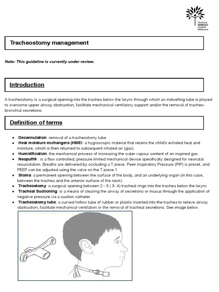 Clinical Guidelines (Nursing) Tracheostomy Management Respiratory